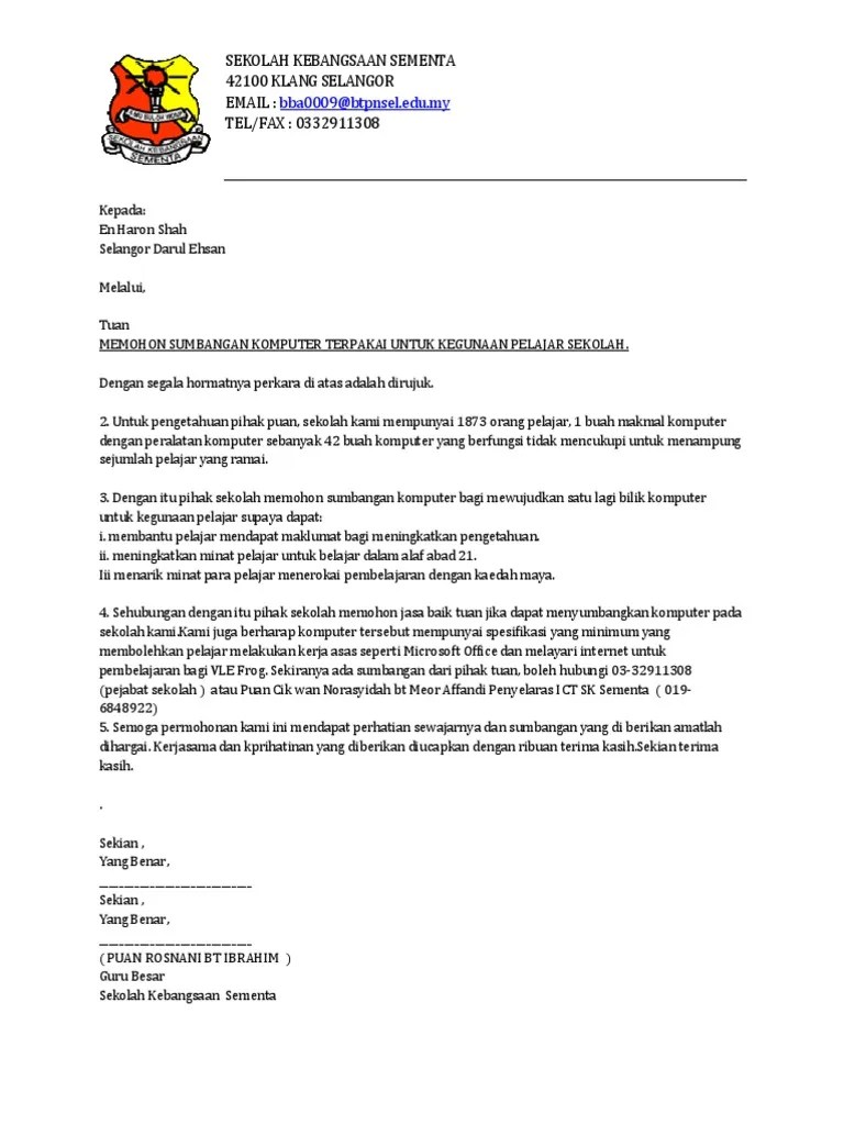 Contoh Surat Rasmi Permohonan Kerjasama Letter 7saudara Com